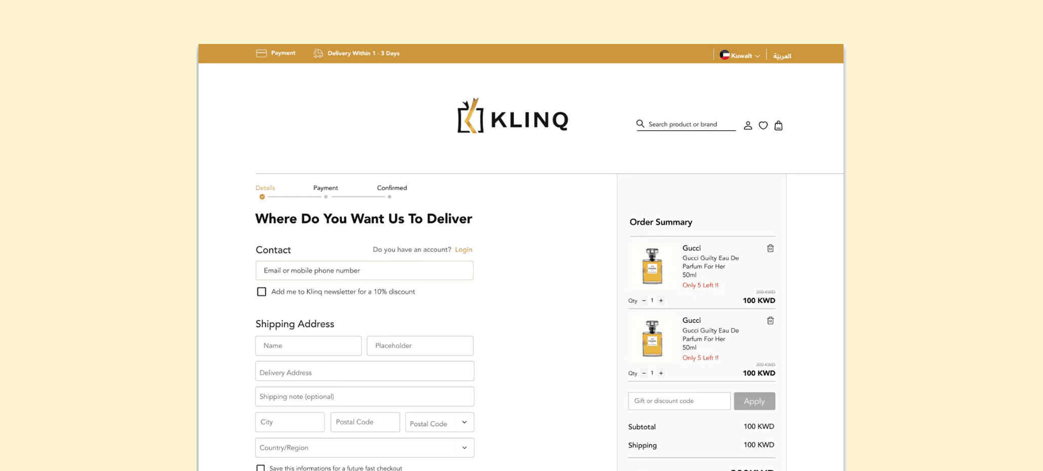 UX research for Klinq’s e-commerce platform, including competitor benchmarking and heuristic analysis, leading to a redesigned experience